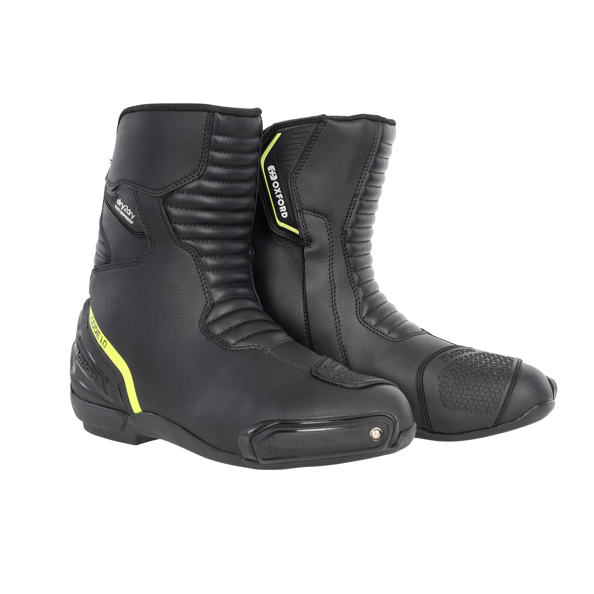 Designed For Waterproofing, Wearability And High Spec Protection, The Low-profile Opening On The Code 1.0 Mid Allows Them To Be Worn Comfortably Under Many Styles Of Motorcycle Trousers And Jeans – Great For Touring And Commuting Alike. The Code Mid 1.0 Is Ce Certified To Level 2/2/2/2, The Highest Boot Rating Achievable. Considerable Attention Has Been Paid To The Boot's Protective Features To Achieve This, Including Pu Reinforcements At The Toe, Heel Counter, Footbed And Ankle Protection. The Microfibre Upper Also Boasts Impressive Resistance To Abrasion And Impact Cutting. The Code 1.0 Mid Utilises Oxford's Performance Sports Boot Sole And External Tpu Heel Protection System, Offering Impressive Control And Peace Of Mind When You Need It Most. Comfort Features Such As Accordion Stretch At The Front And Rear Improve The Boot's Flexibility, Reducing Fatigue Without Affecting Protective Performance. A 3d Mesh Lining Enhances Breathability, Working Hand In Hand With The Dry2dry™ Breathable Membrane To Wick Sweat Away For All Day Comfort.protection