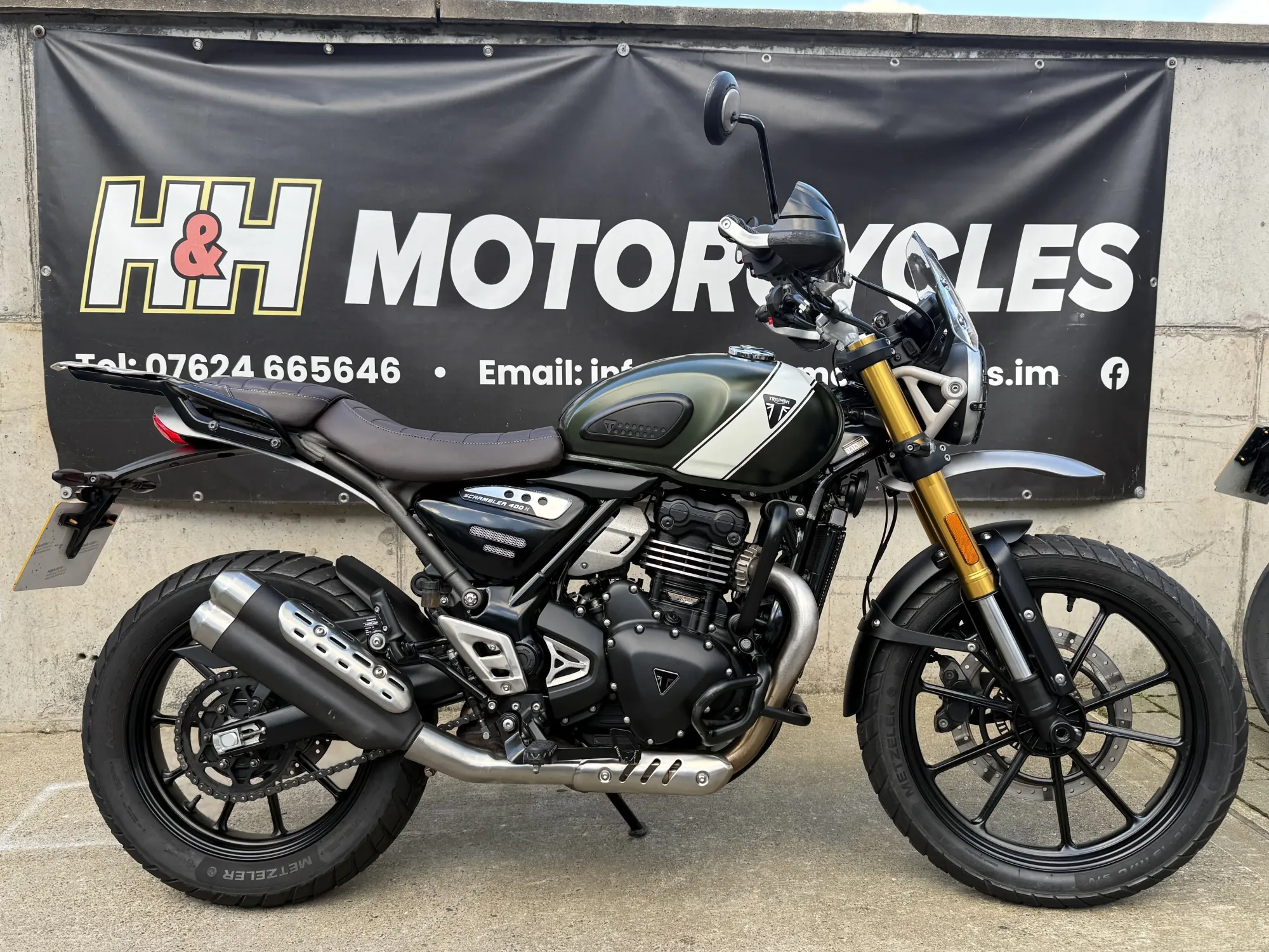 An immaculate example of a one owner, low mileage Triumph Scrambler 400 X in beautiful matt green has arrived into stock. This example of Triumph's Scrambler version 400 cc bike has its two keys, both service and service history. Fully prepped in our H&H workshop prior to sale.